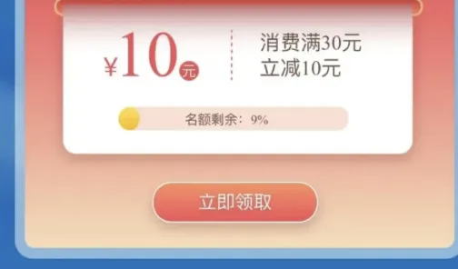 次周三10点抢:满30减10元支付券,周限1次,5000名额