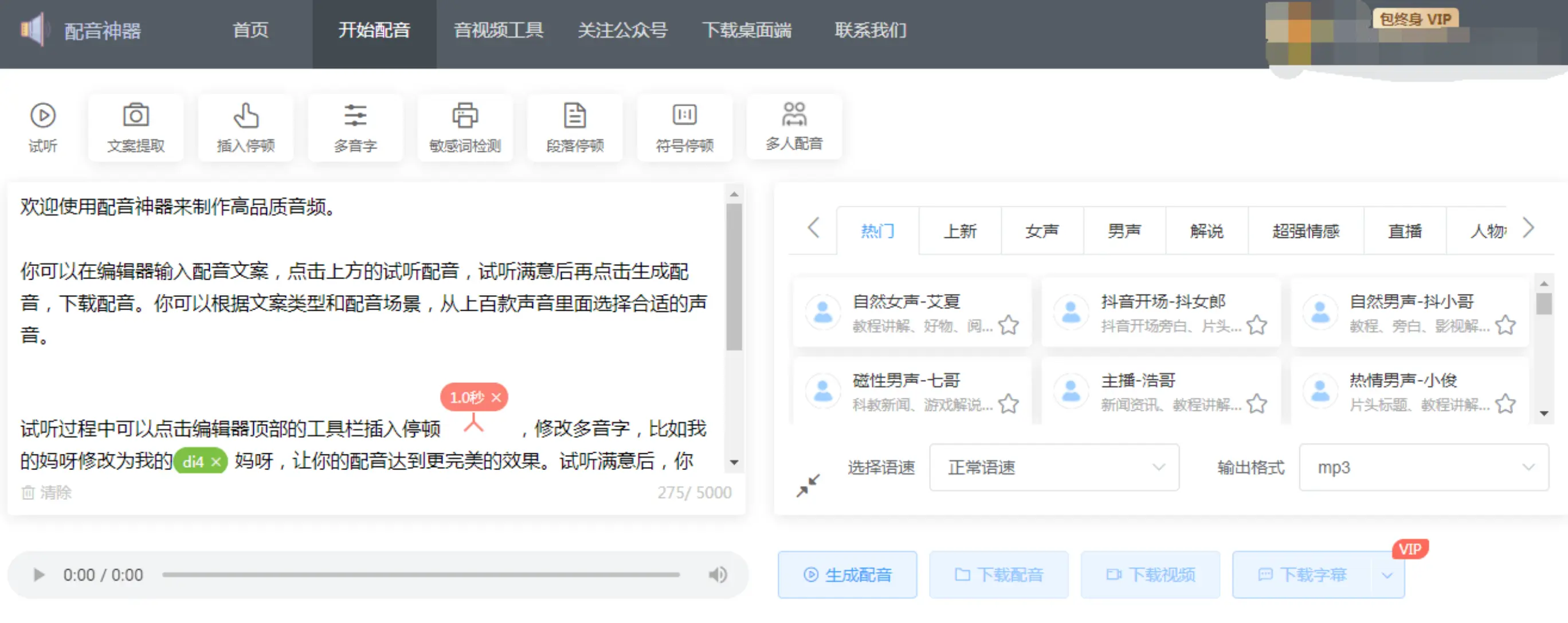 配音神器,一键文字转流畅自然声音,打开微信扫描即可预览。不管你是用来做自媒体短视频,制作教程配音,还是广告配音都可以使用配音神器来完成。性价比非常高的一款配音软件!不建议大家去选择免费版,语音少,限制较多,配音效果差,不值得浪费时间,最后做出来的不能满足自己的需求。
